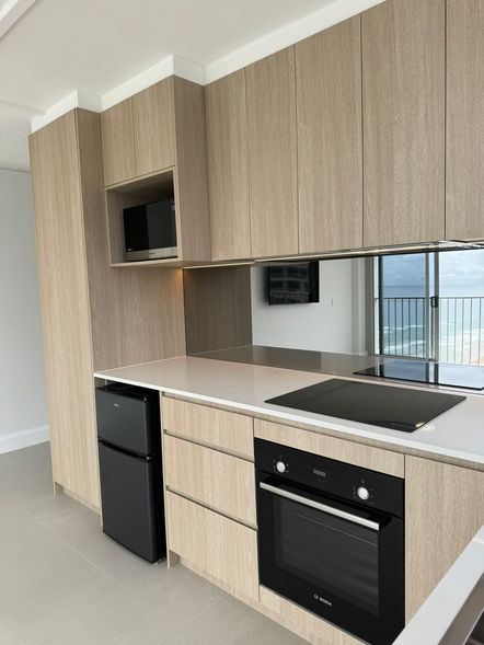 The renovation focuses on optimising functionality in the two-bedroom units, with updated kitchens and bathrooms, as well as refreshing window dressings and furnishings to enhance guest comfort and style. This is a budget driven renovation, keeping in mind it is an investment property. With its prime location and modern amenities, the revamped apartment promises a luxurious and memorable stay for traveler's seeking a beachside getaway.